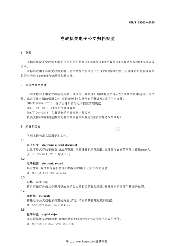 党政机关电子公文归档规范