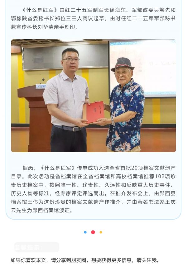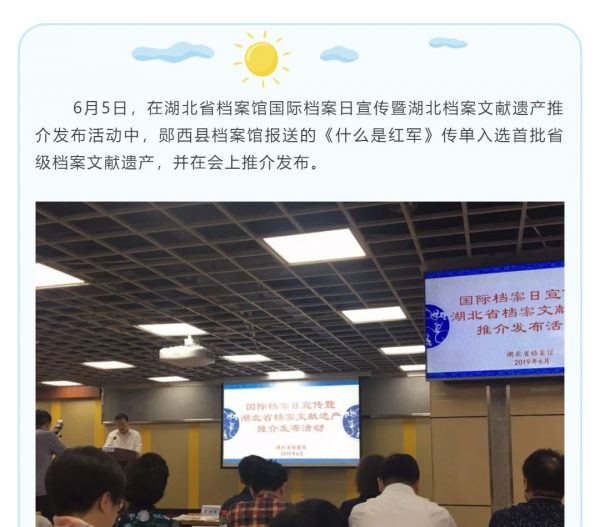 《什么是红军》传单入选湖北省档案文献遗产名录