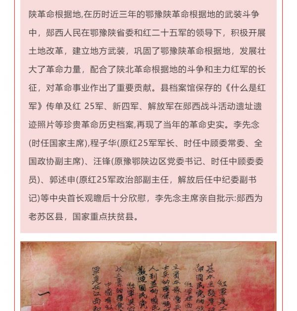 档案为郧西申报“老苏区县”立功